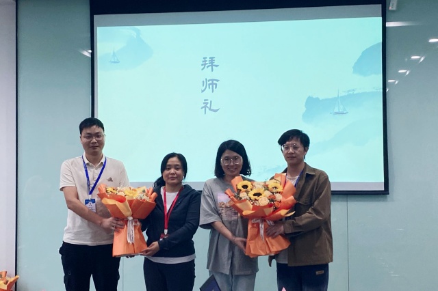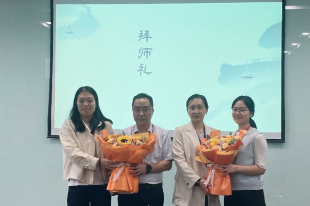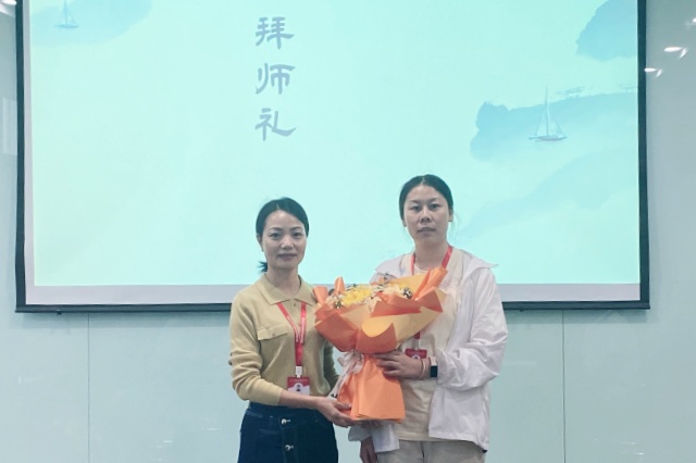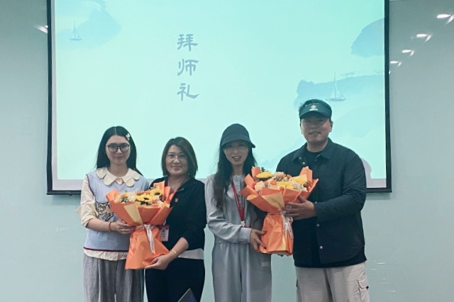“师徒”结对确定后举行了拜师仪式,徒弟们向师傅送上鲜花并施拜师礼,双方通过学习学校督导工作方案明确师徒双方各项职责。
