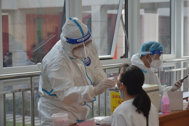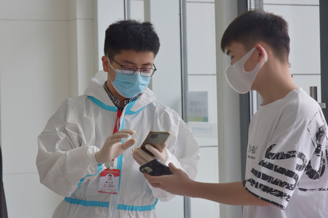 接到核酸采样检测任务后,学校广大党员冲锋在前开展志愿服务工作,学生志愿者紧急支援,现场筑起“青春防线”。全员的共同努力使检测工作高效有序地进行。