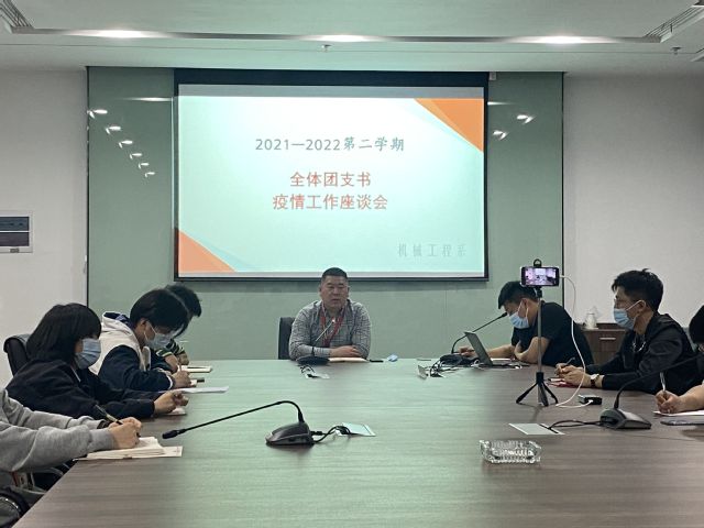 为进一步落实立德树人的根本任务,持续推进我系优良学风建设,加强疫情防控期间学生的动态管理与安全教育,关心学生的学习、生活、思想状况,2022年4月19日晚7点至9点,我系于育德楼303会议室分别召开了班长疫情防控工作座谈会和团支书疫情防控工作座谈会。本次座谈会采取了线上线下相结合的形式。机械工程系党支部书记李杰、学工干事顾航、全体专兼职辅导员参加了本次座谈会。
