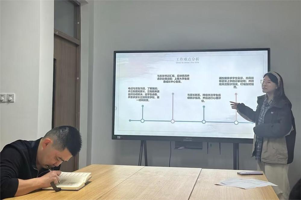 4月9日下午,自动化工程系在敏行楼305开展“学生突发危机事件应对”主题辅导员业务研讨,全体辅导员参加,本次研讨由辅导员贾涵主讲。