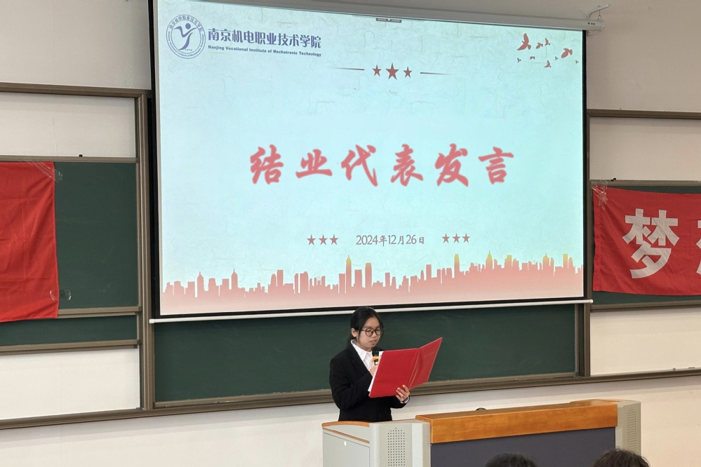 机电245班万茜代表入团积极分子结业学员进行发言。万茜同学分享了培训期间的感悟与体会,她表示将以团员的标准严格要求自己,在行动上积极向团组织靠拢。无论是参与志愿服务、社会实践还是日常的学习生活,她都将以饱满的热情和高度的责任感,用实际行动接受团组织的考验,以坚定的信念和不懈的努力,争取早日成为一名光荣的共青团员。