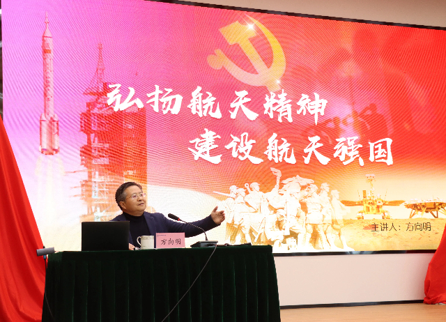方向明首先带领大家回顾了人类航天事业的起源、发展历程以及关键里程碑事件,展现了航天事业从无到有、从小到大的壮丽图景。他详细介绍了新时代中国航天事业取得的辉煌成就,如载人航天、月球探测、北斗系统及天宫空间站等,彰显了我国航天事业的蓬勃发展和国际地位的提升。他强调,航天事业具有高风险、高投入、国际化合作和技术创新驱动的特点,对国家安全与国际地位具有重要意义。通过讲述航天先驱与当代杰出人物的故事,方向明弘扬了勇于探索、挑战极限、无私奉献和团队合作的航天精神。他鼓励大家在新时代背景下继续发扬航天精神,推动航天事业高质量发展,激励师生勇于追梦、担当责任,为航天事业贡献力量。