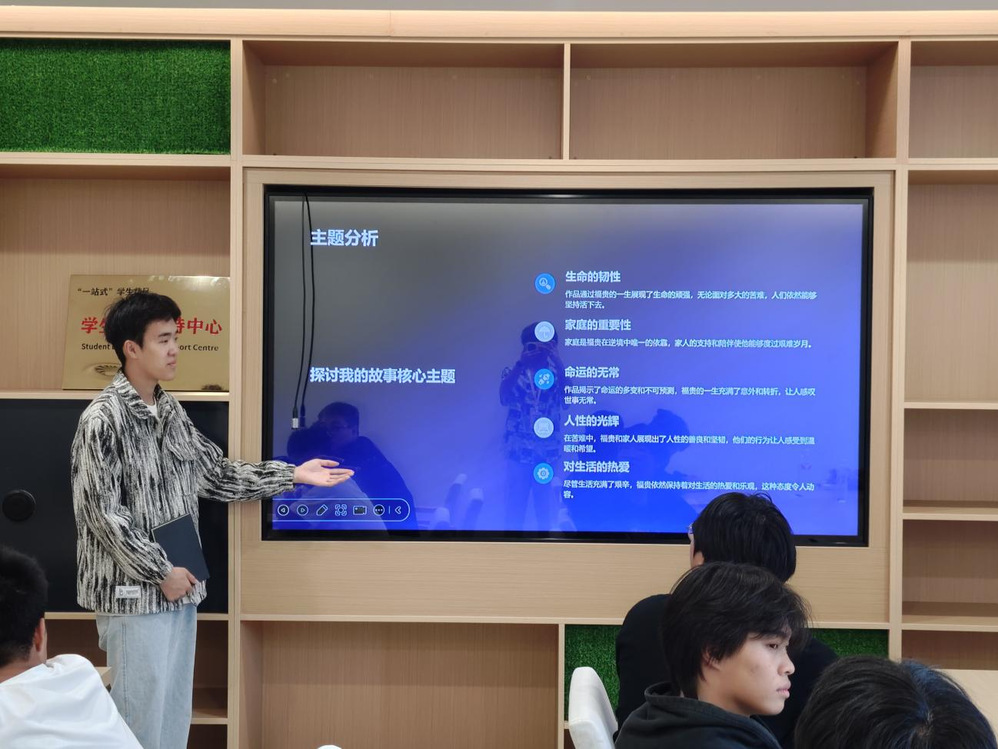 4月18日,自动化工程系在“一站式”学生社区举办“我的故事分享会”。张玉鸿同学结合学习余华《活着》的感悟,讲述了自己从学生工作“新手”成长为老师得力助手的故事。
