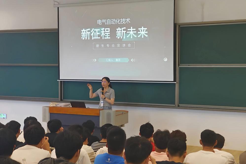 9月15日,电气自动化技术专业在善学楼204教室召开2025级新生专题宣讲会。活动由电气教研室主任袁芬主持,全体新生参会,旨在以“专业启蒙课”帮助新生融入专业、明晰大学规划。