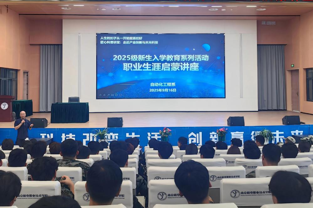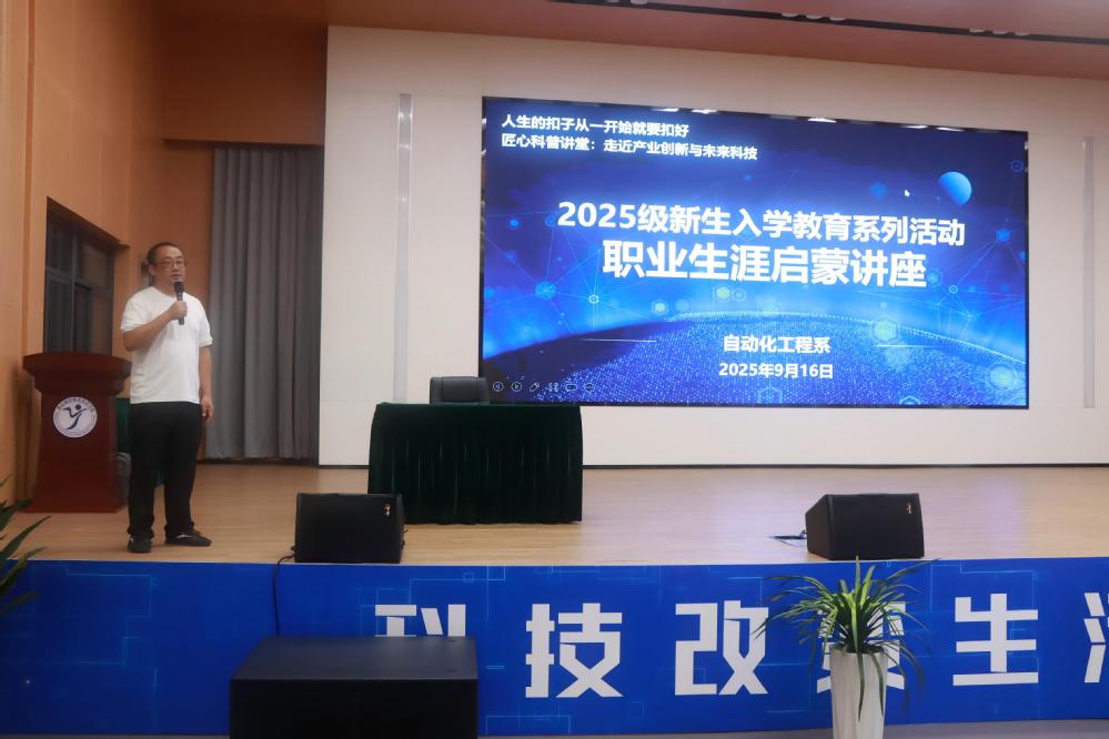 9月16日,2025级新生入学教育系列活动——“匠心科普讲堂:走近产业创新与未来科技”职业生涯启蒙讲座在乐学楼102圆满举行。活动由自动化工程系副主任顾晟吉主持,特邀上海三菱电梯有限公司技术总监秦勇泉担任主讲嘉宾,自动化工程系辅导员及2025级机电一体化技术专业全体新生共同参与。