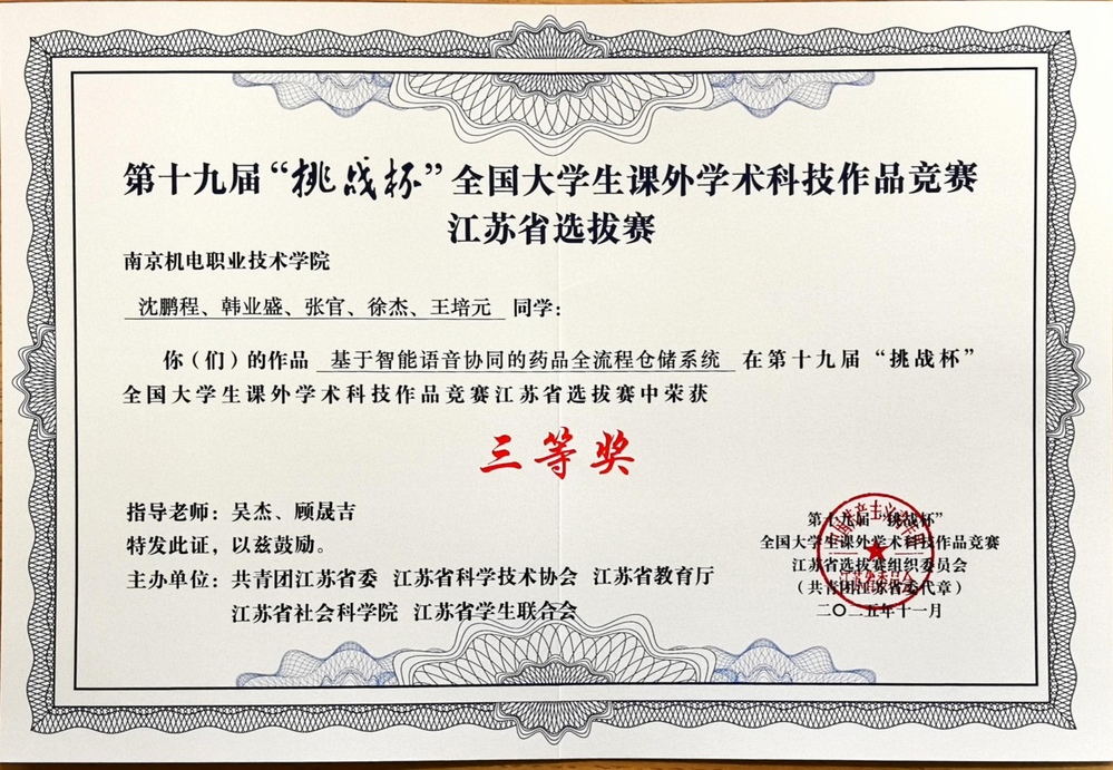 日前,第十九届“挑战杯”全国大学生课外学术科技作品竞赛江苏省选拔赛落幕,自动化工程系师生凭借扎实的专业功底与创新实践能力,获得三等奖2项,展现科创育人领域成效。