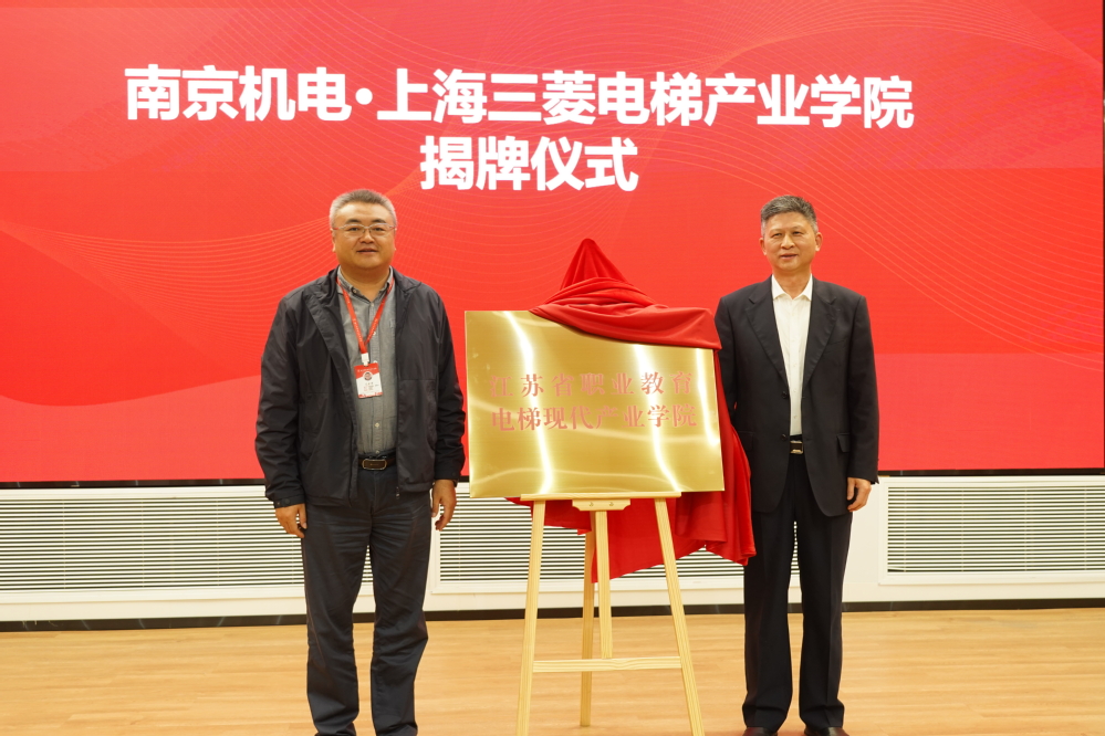仪式上,刁爱军致欢迎辞,强调产业学院是推动专业与产业精准对接的重要载体,学校将依托三菱电梯优质资源,优化机电一体化技术专业培养方案,助力学生成长为行业急需的高素质技术技能人才。电梯产业学院执行院长、自动化工程系副主任顾晟吉介绍了产业学院建设成效,学院已帮助大批毕业生实现实习就业,打通校园到职场的通道,并成功申报南京市技能大师工作室,为行业人才培养提供支撑。随后,校企双方领导共同为产业学院揭牌,现场掌声雷动。