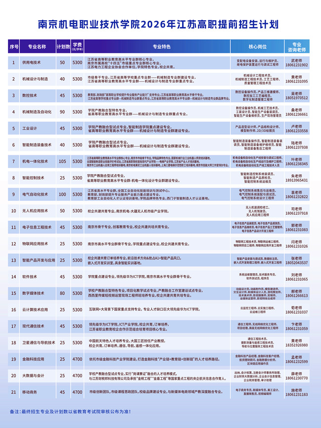 南京机电职业技术学院2026年提前招生彩页