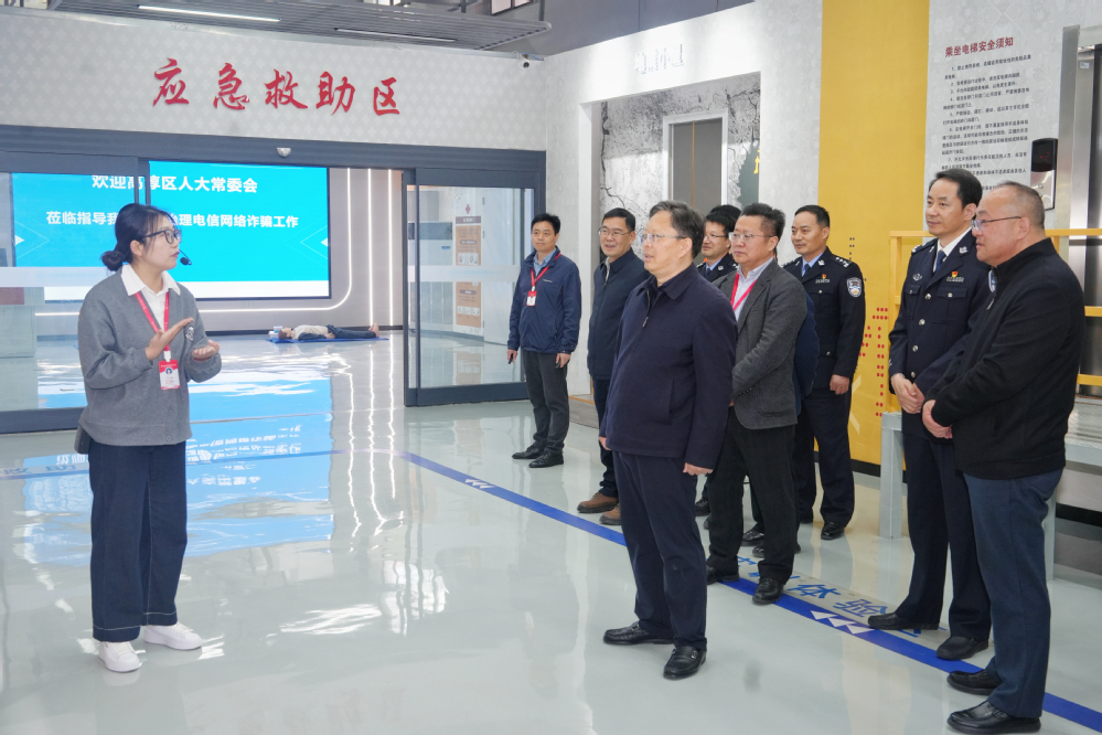 为进一步推动《中华人民共和国反电信网络诈骗法》在高校领域的贯彻落实,凝聚打击治理电信网络诈骗工作合力,切实维护广大师生的财产安全和校园稳定,2026年3月26日上午,高淳区人大常委会主任宋卫星带领部分区人大代表组成调研组,深入南京机电职业技术学院专题调研反电信网络诈骗工作开展情况。区人大常委会办公室、研究室主要负责同志,部分市人大代表、区公安分局相关负责同志及学校党委书记、校长周庆礼,党委副书记、副校长赵学洪陪同调研。