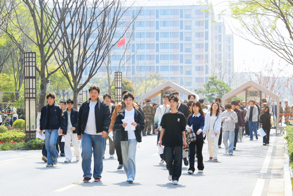 春意盎然的校园里,人潮涌动。为确保考试安全有序进行,学校在东门广场和弘德楼前共设置4个智能安检门,考生们手持准考证与身份证,在工作人员的引导下有序通过安检,快速进入考场。各考区秩序井然,考务人员严格按程序组织实施,考生们沉着冷静、认真作答。