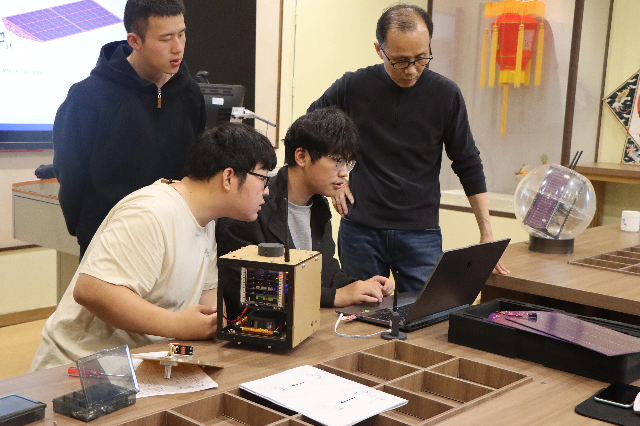 在测控软件应用环节,学生通过地面站模拟软件对组装好的桌面卫星发送指令,控制反作用飞轮调速、驱动太阳能帆板,观察并记录卫星的响应数据。这一环节让学生仿佛置身真实卫星测控中心,直观理解了卫星在轨运行的状态反馈与数据记录流程,也启发了他们从系统工程角度思考创新项目的落地路径。