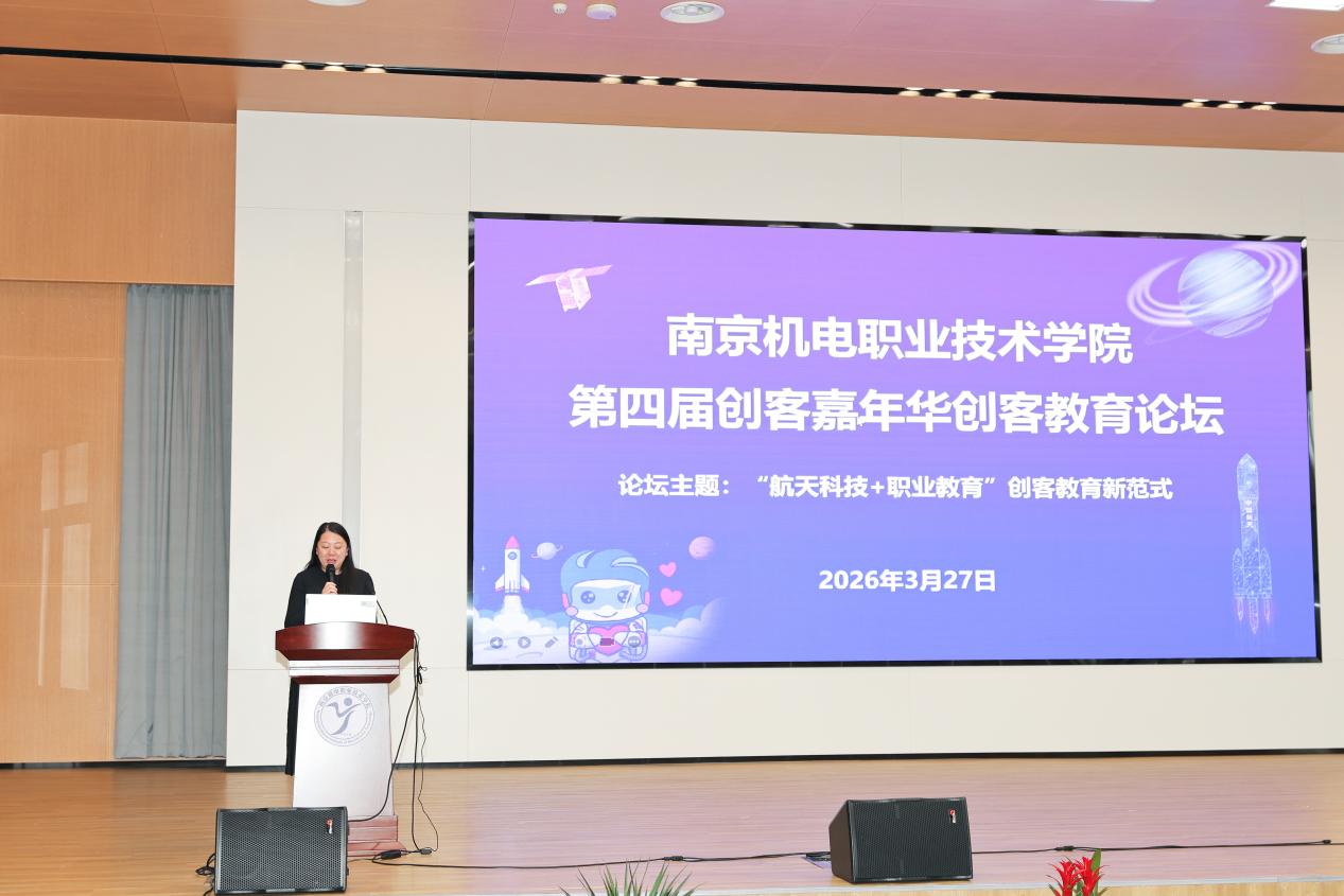 2026年3月27日,作为学校第四届创客嘉年华暨第一届非遗文化节的重要活动,创客教育论坛在南京机电职业技术学院乐学楼报告厅举行。论坛以“航天科技+职业教育”创客教育新范式为主题,邀请航天专家与学校近500名师生共同探讨航天科技与职业教育的紧密联系,并在他们心中播下航天工匠梦的种子。本次论坛由信息工程系书记陈雪主持。