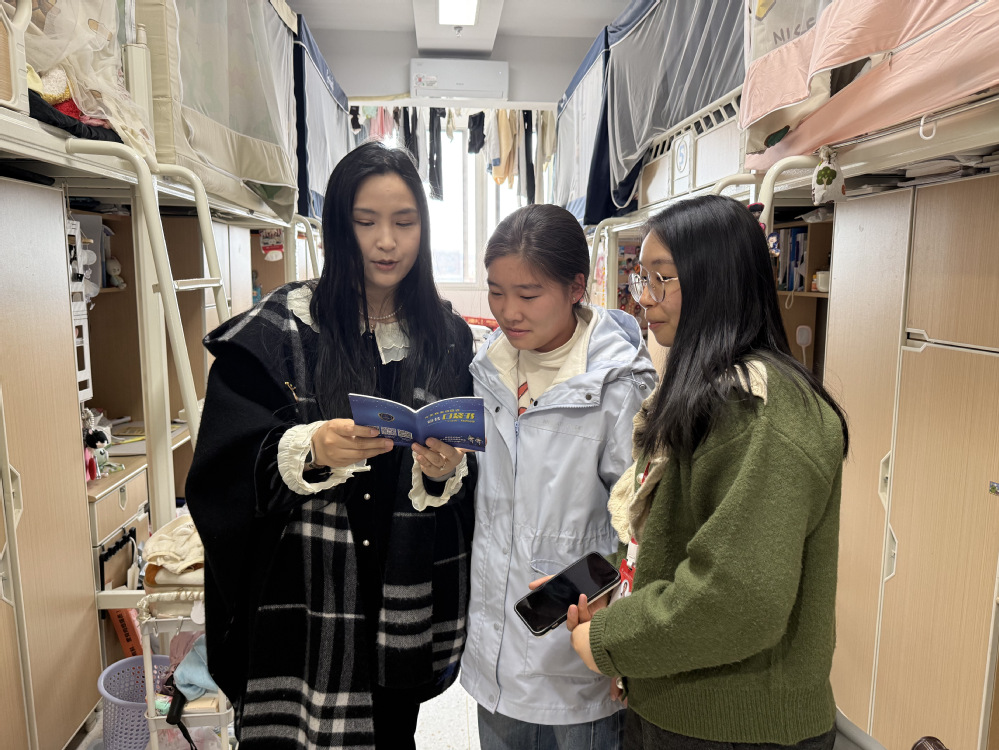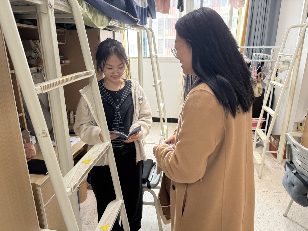 为深入推进“一站式”学生社区建设,强化宿舍精细化管理,筑牢校园安全与反诈防护屏障,3月26日下午,人文社科系紧扣“党建引领守初心,社区护航防诈骗”主题,在学校党委委员、纪委书记、工会主席姜振宇、系部党支部书记李杰带队下,组织党员教师、学生干部协同发力,深入润泽苑、思齐苑、静思苑全体学生宿舍,开展全覆盖文明安全提升与反诈宣传专项活动,切实守护学生身心健康与财产安全。