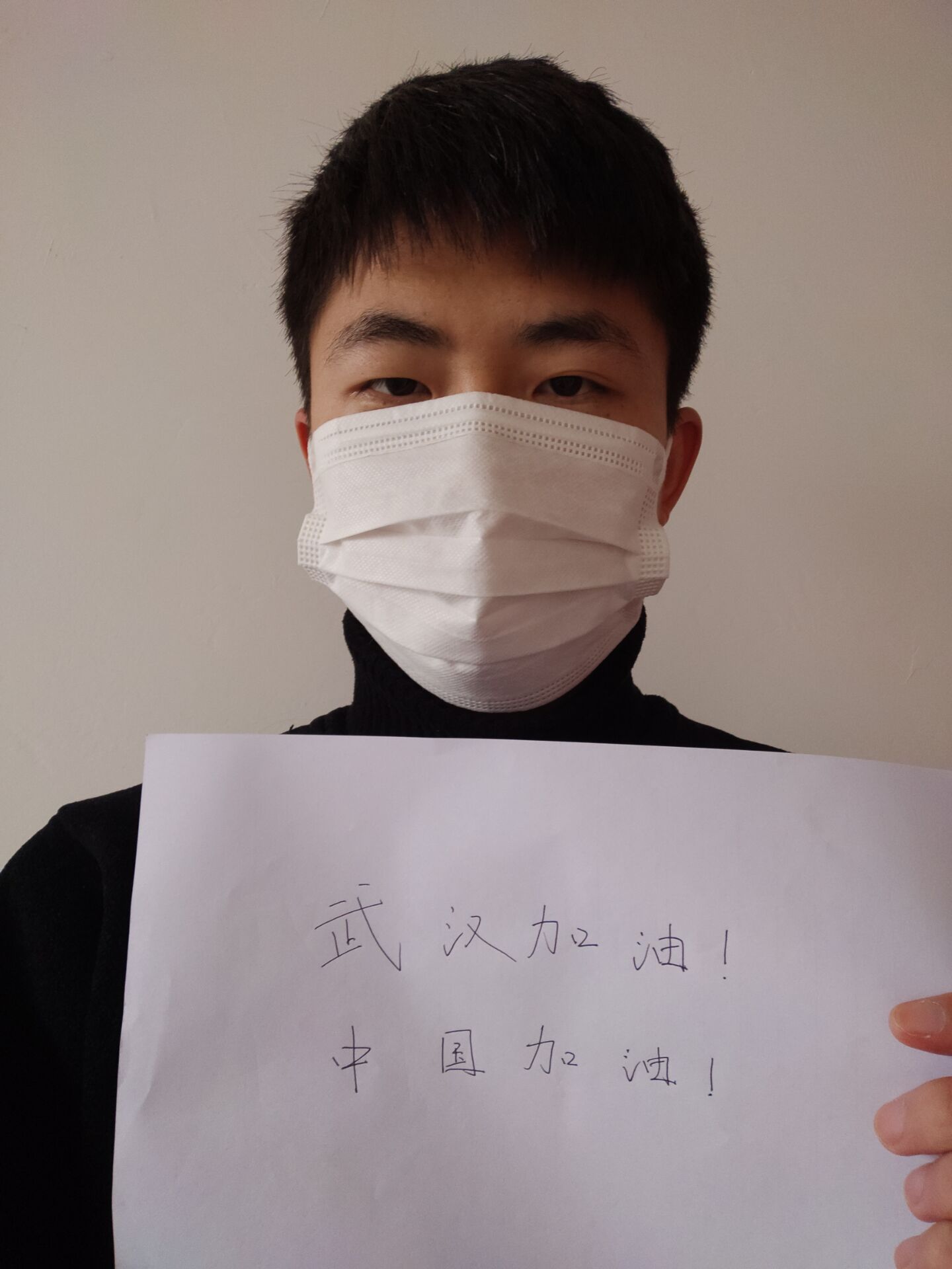 通信191班团支书宫瑞棋:我在江苏南京为武汉加油!为中国加油!向所有奋战防疫一线的医务工作者和工作人员致敬!希望所有的朋友能够平安健康!让我们齐心协力早日赢得这场战役!