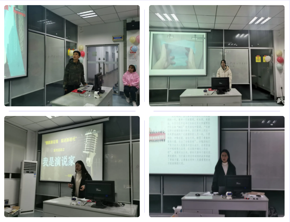此次比赛,36名参赛选手依次登台亮相展现风采,其中10名中央门校区学生采用线上腾讯会议的方式进行演讲,沧波门校区的学生采用线下演讲的方式进行演讲。同学们演讲主题新颖、内容积极向上、形式丰富多彩,传达着他们对新时代新精神的感悟。比赛最后,团总支书记于宇老师点评选手们的特色与优点,鼓励大家勇于表现自己,展示自己心中所想、心中所爱,传播更积极的思想。