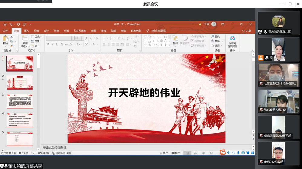 5月12日晚19点,南京机电职业技术学院信息工程系党支部组织21级先进团员开展线上学习,学习内容为中共一大会议精神,我院思政中心董志鸿老师为主讲老师。