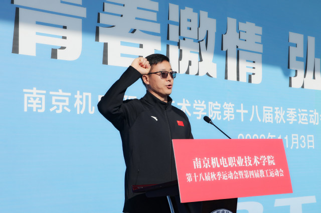 开幕式由校团委副书记孙晓燕主持。党委副书记、副校长赵学洪致辞,他希望同学们珍惜运动会这样一个增强体魄、凝聚人心的好机会,共同铸就光荣与梦想,共同谱写南京机电的华丽乐章。
